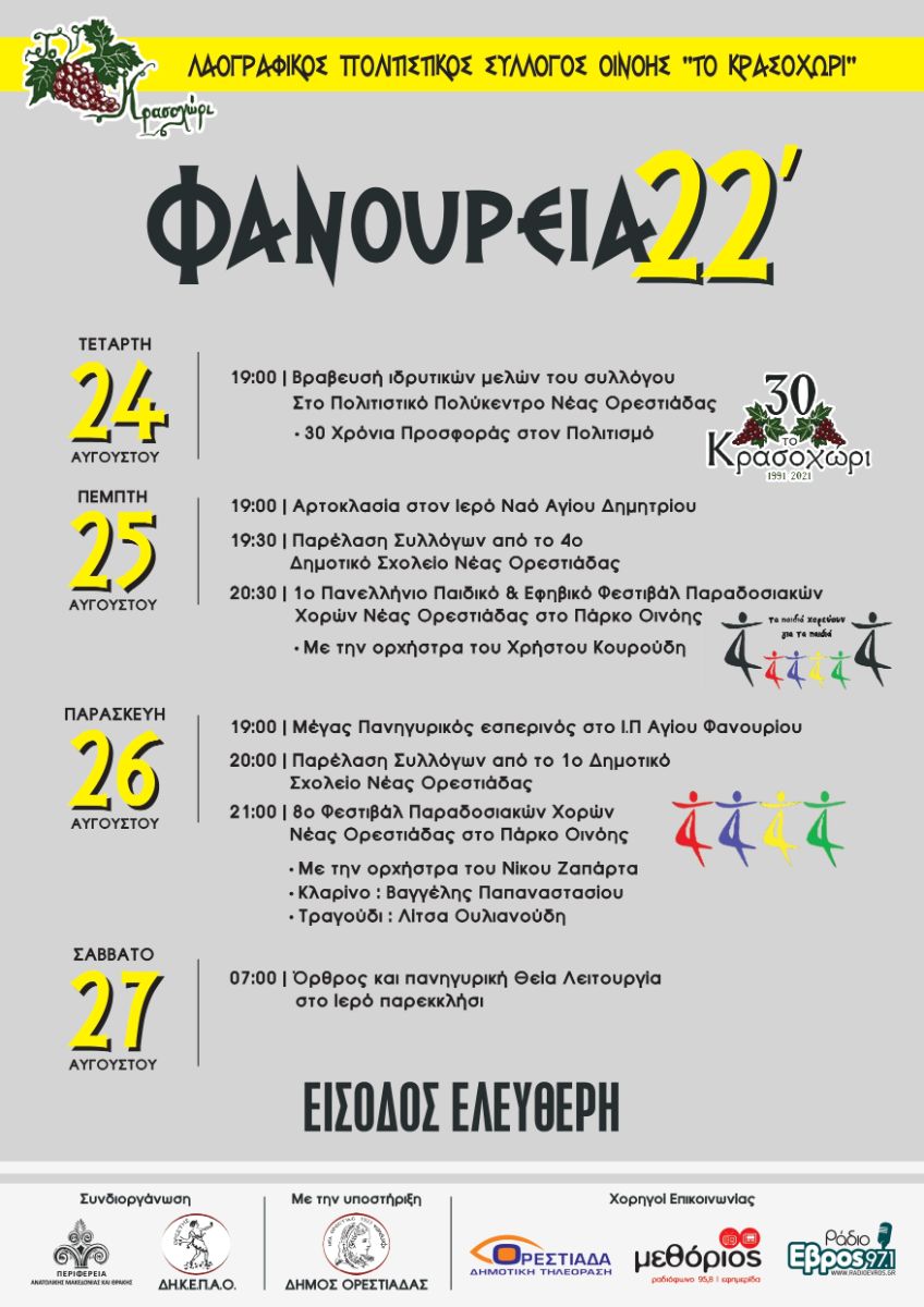 ORESTEIA (ANNIVERSARY EVENTS OF THE MUNICIPALITY OF NEAS ORESTIADAS)